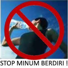 Mengapa Rasulullah melarang ummatnya minum berdiri. Dalam hadist disebutkan “janganlah kamu minum sambil berdiri” Ini dibuktikan dari segi kesehatan. Air yang masuk dengan cara duduk akan disaring oleh sfringer. Sfringer adalah suatu struktur maskuler (berotot) yang bisa membuka (sehingga air kemih bisa lewat) dan menutup. Setiap air yang kita minum akan disalurkan pada ‘pos-pos’ penyaringan yang berada di ginjal. Nah. Jika kita minum berdiri. Air yang kita minum tanpa disaring lagi. Langsung menuju kandung kemih. Ketika langsung menuju kandung kemih, maka terjadi pengendapan disaluran ureter. Karena banyak limbah-limbah yang menyisa di ureter. Inilah yang bisa menyebabkan penyakit kristal ginjal. Salah satu penyakit ginjal yang berbahaya. Susah kencing itu penyebabnya.
